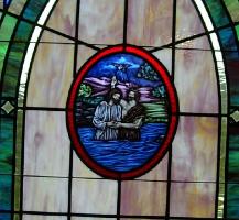 | In this instance, a Bible verse is used in the dedication plaque area to compliment the beautiful and moving scene of the baptism of Jesus by John the Baptist. |